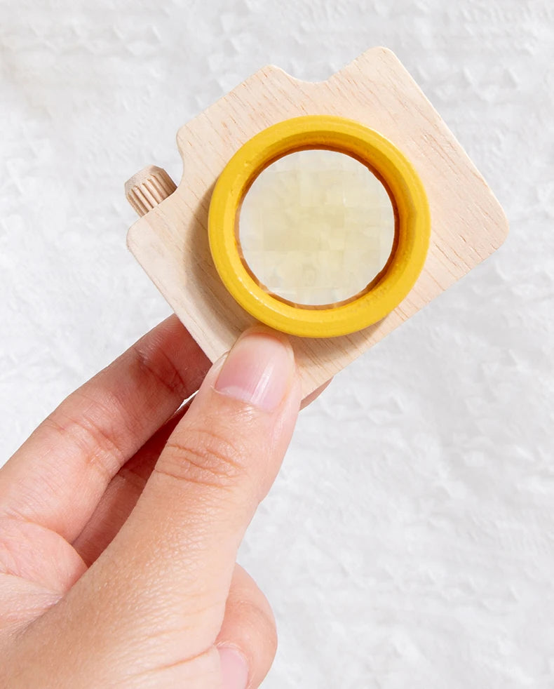 Experience the magic of color and design with the Wooden Camera Kaleidoscope. Crafted from high-quality wood, this unique kaleidoscope is designed to resemble a vintage camera, offering a nostalgic, artistic twist on a classic toy. With each turn, vibrant, ever-changing patterns unfold inside, turning ordinary moments into a mesmerizing visual journey.